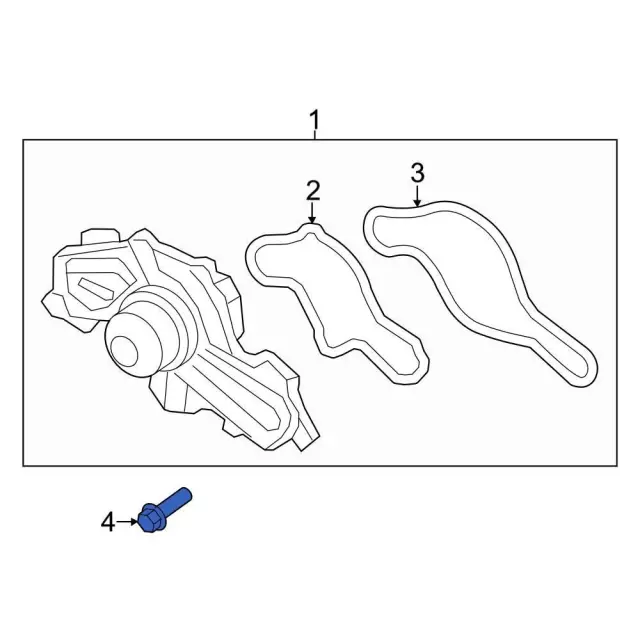 Auxiliary Pump Bolt, Water Pump Bolt, Adapter Bolt, Water Outlet Bolt, Belt Tensioner Bolt, Connector Tube Bolt, Thermostat Outlet Bolt, Connector Pipe Bolt, Thermostat Housing Bolt, Water Pipe Bolt, Thermostat Housing Lower Bolt, Camshaft Sensor Bolt, Sensor Bolt, Inner Housing Bolt, Engine Oil Filter Adapter Bolt, Engine Water Pump Bolt, Water Pump Tube Bolt, Crankshaft Pulley Bolt, Engine Coolant Outlet Housing Bolt, Engine Coolant Thermostat Housing Bolt, Water Feed Tube Bolt, Water Manifold Bolt, Bolt